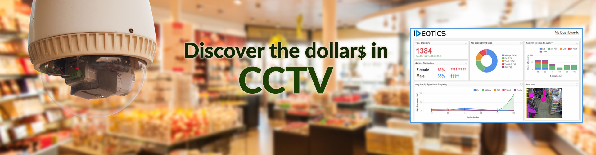For no additional investment! Yes! You read that right!. No additional investment. IDEOtics takes your CCTV footage, converts the video into analyzable data and gives you actionable dashboards!